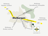 • Nach ca. 11 km an der Ampelkreuzung rechts abbiegen in die Straße „Am Brutberg” (Ausschilderung Richtung Molbergen)